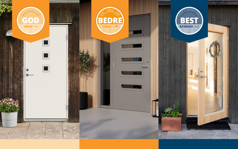 NYHET! Nytt sortiment for ytterdører Den 1. april 2026 oppgraderer vi vårt sortiment av ytterdører og gjør det enda enklere å finne akkurat riktig dør for hvert hjem. Velg mellom tre ulike produktlinjer for å finne din favoritt. Les mer