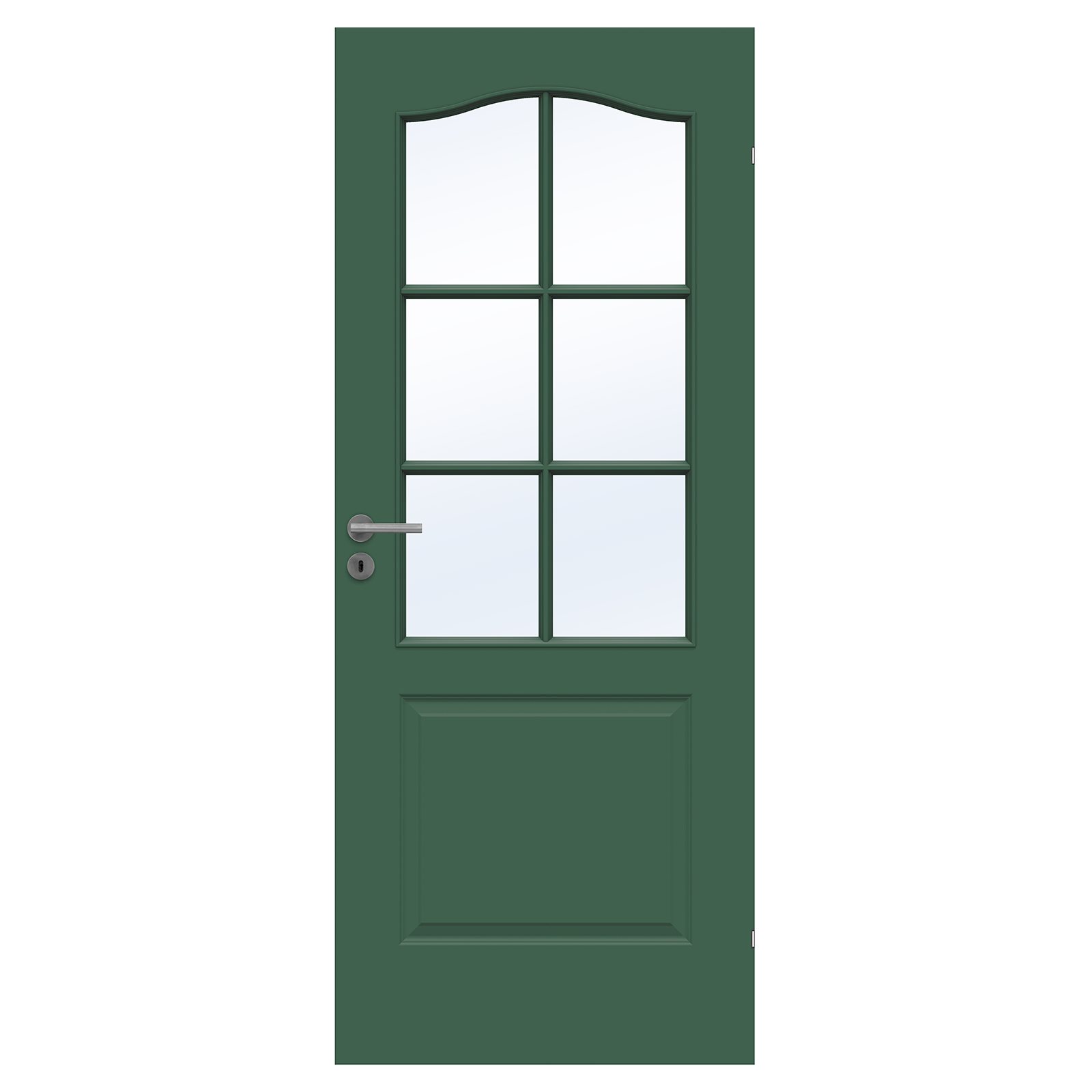 ADVANCE-LINE massiv formpresset innerdør med glass i klassisk design. Den massive kjernen gir døren en lydreduserende effekt. Døren kan leveres både som pardør og skyvedør.